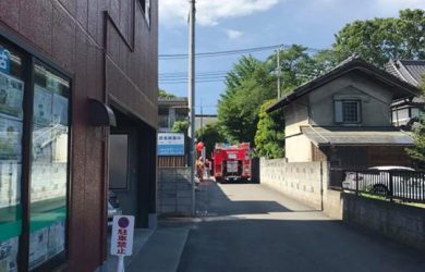 会社の裏の保育園でボヤ騒ぎ💦 煙は出てないけど、何だろう❓