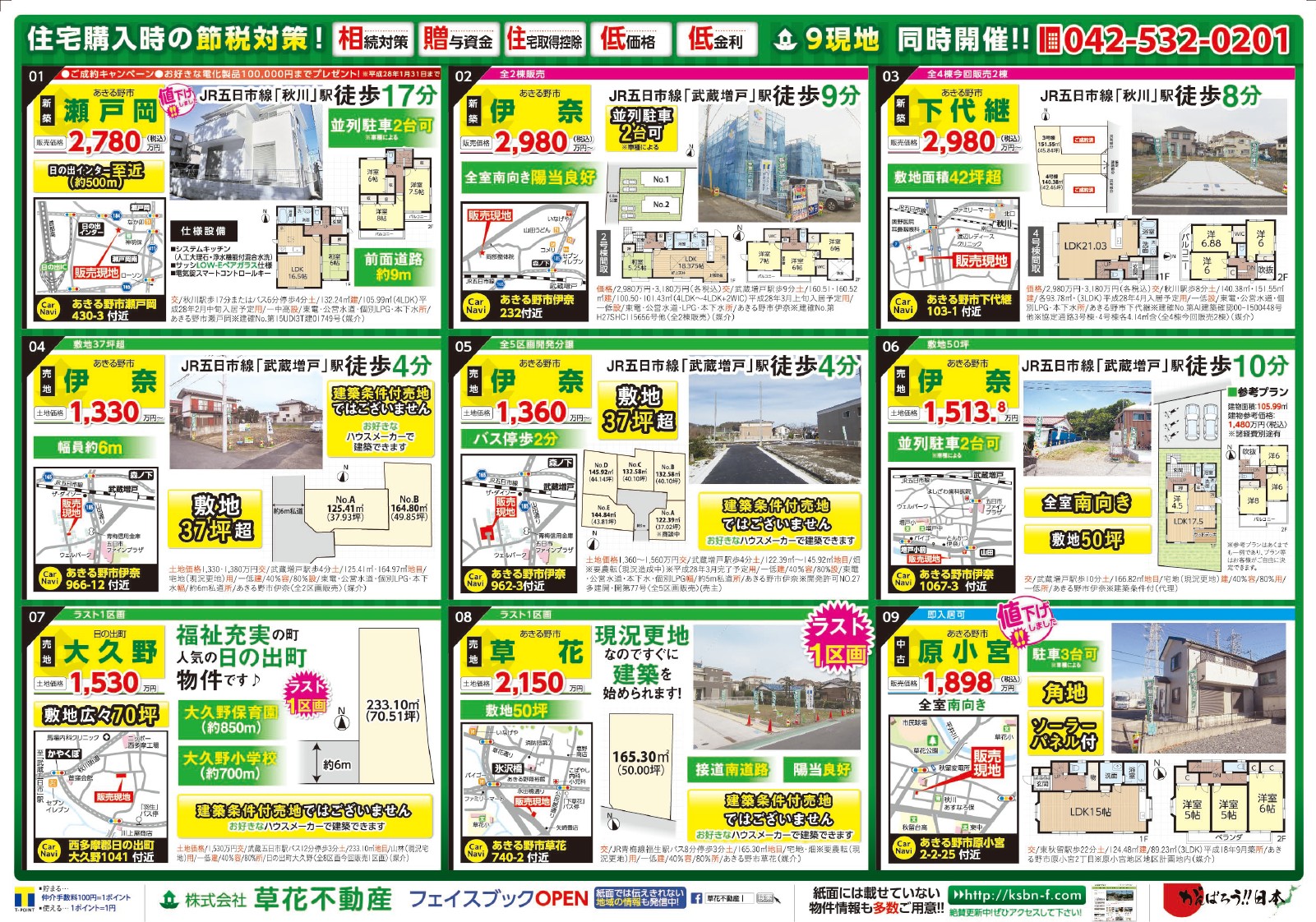 あきる野市草花の草花不動産。 地元密着、JR五日市線沿線を中心にあきる野市~日の出町近郊の新築・中古・土地など不動産のことなら何でもご相談ください。