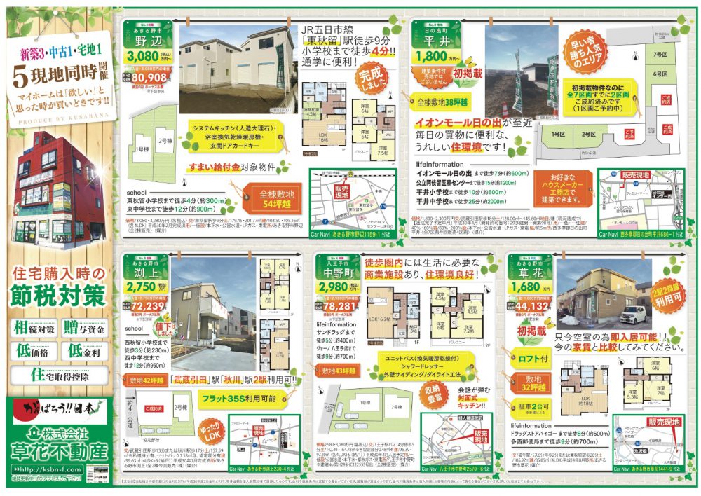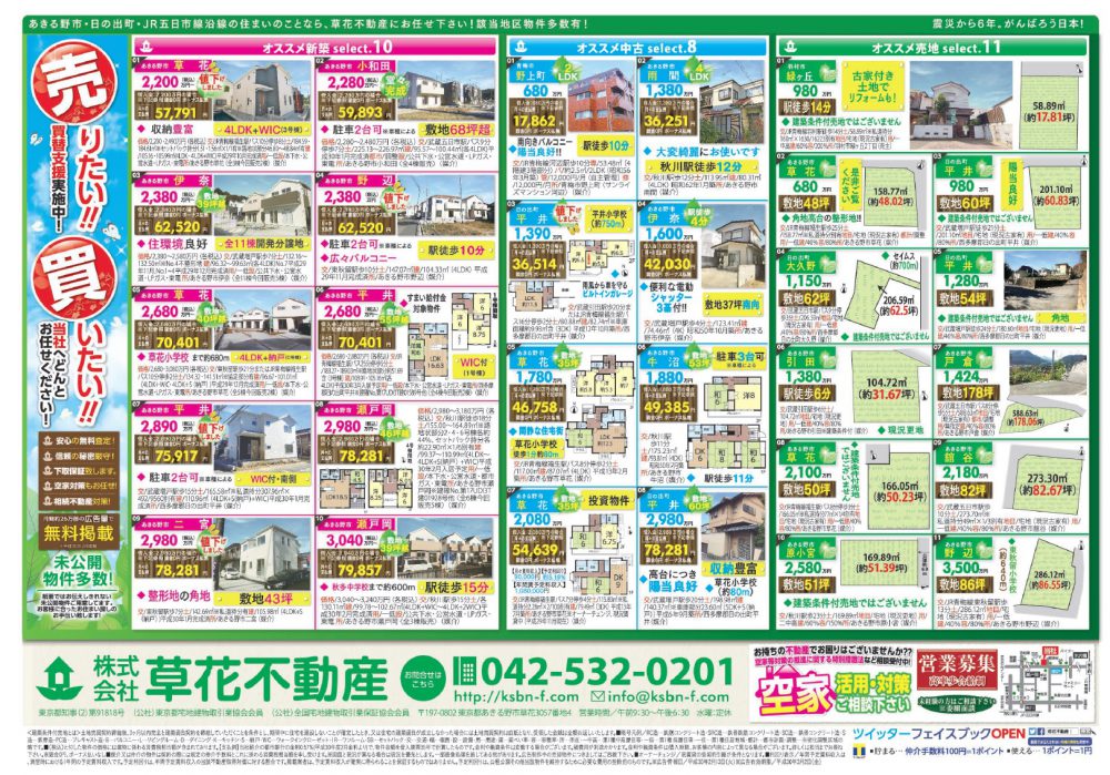 あきる野市草花の草花不動産。 地元密着、JR五日市線沿線を中心にあきる野市~日の出町近郊の新築・中古・土地など不動産のことなら何でもご相談ください。