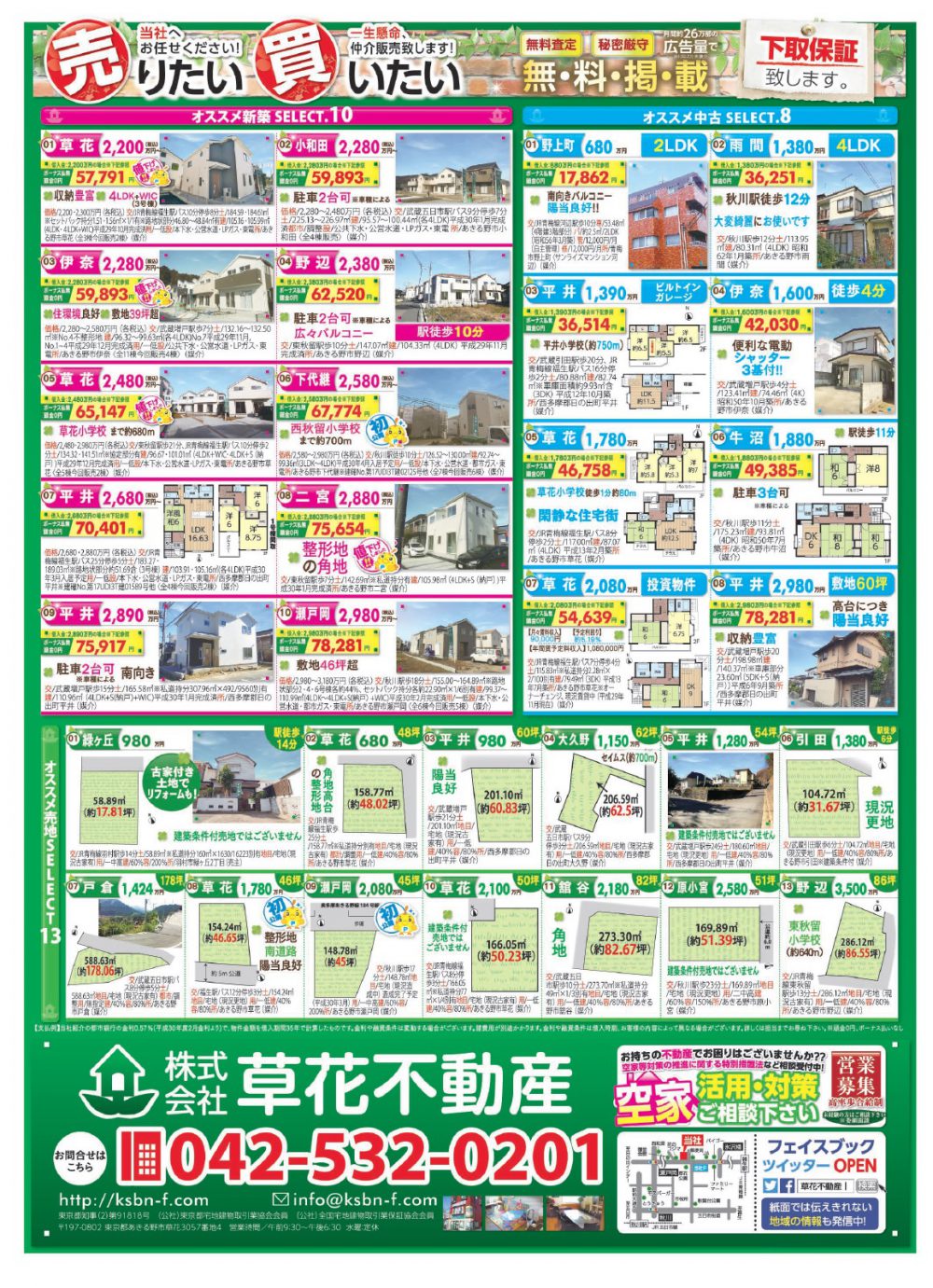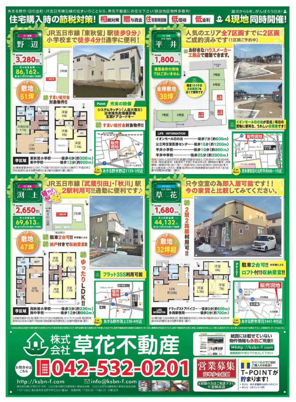 あきる野市草花の草花不動産。 地元密着、JR五日市線沿線を中心にあきる野市~日の出町近郊の新築・中古・土地など不動産のことなら何でもご相談ください。