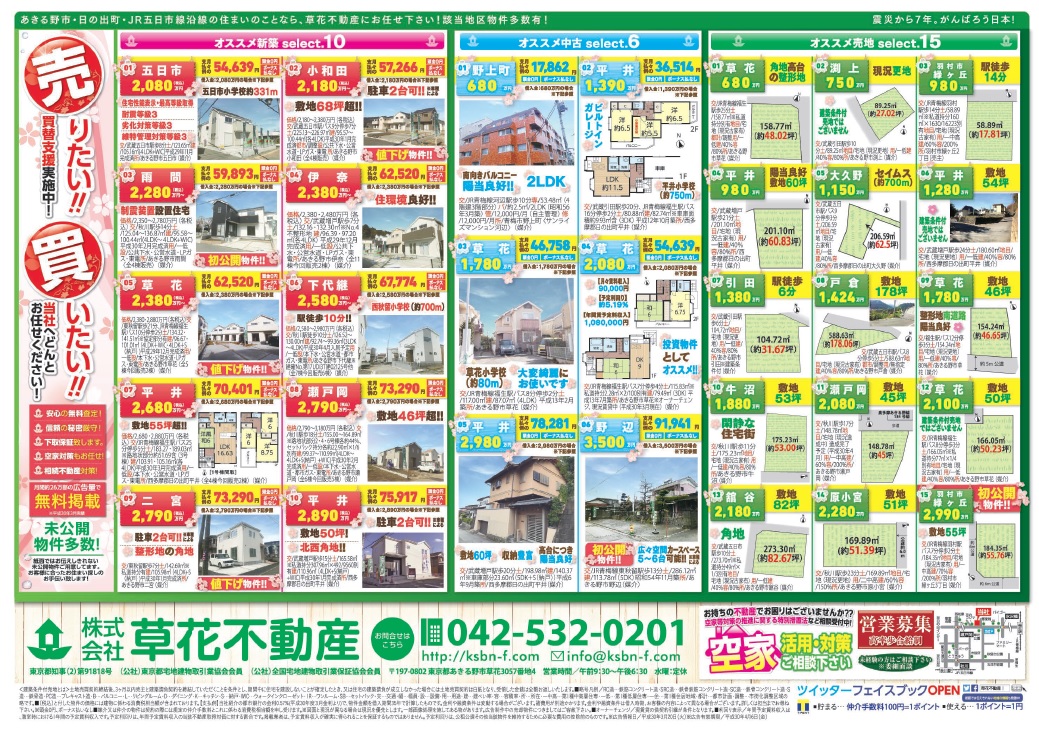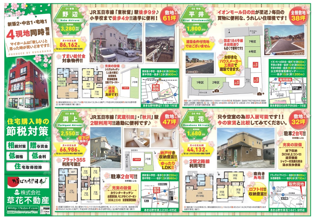 あきる野市草花の草花不動産。 地元密着、JR五日市線沿線を中心にあきる野市~日の出町近郊の新築・中古・土地など不動産のことなら何でもご相談ください。