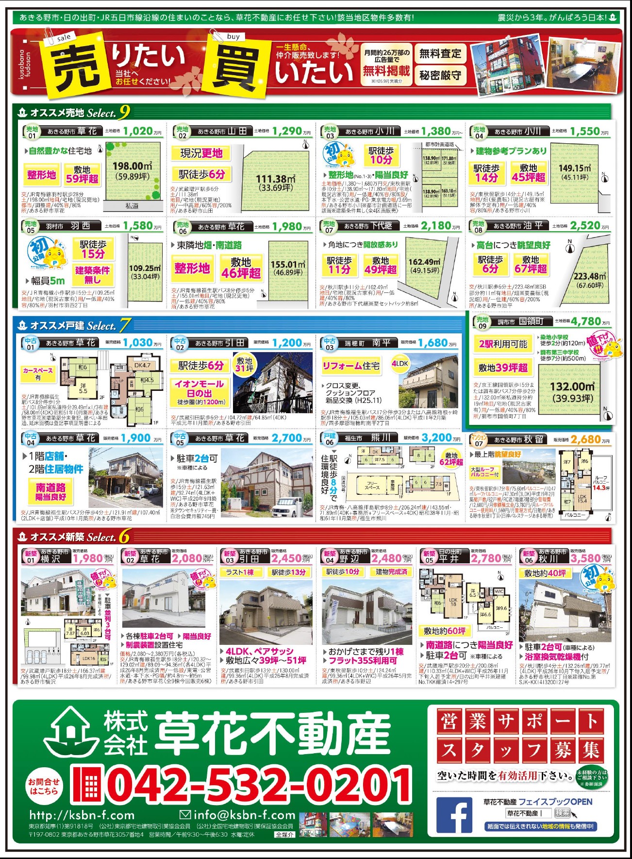 あきる野市草花の草花不動産。 地元密着、JR五日市線沿線を中心にあきる野市~日の出町近郊の新築・中古・土地など不動産のことなら何でもご相談ください。