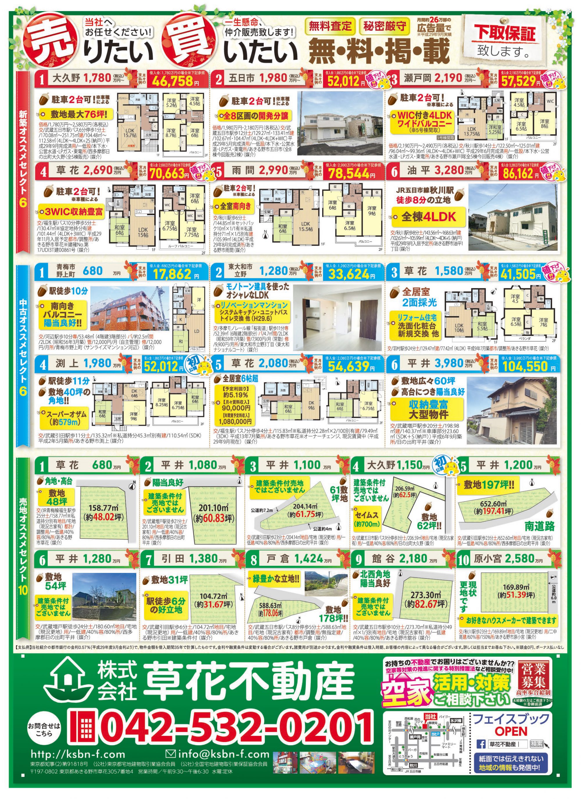 あきる野市草花の草花不動産。 地元密着、JR五日市線沿線を中心にあきる野市~日の出町近郊の新築・中古・土地など不動産のことなら何でもご相談ください。