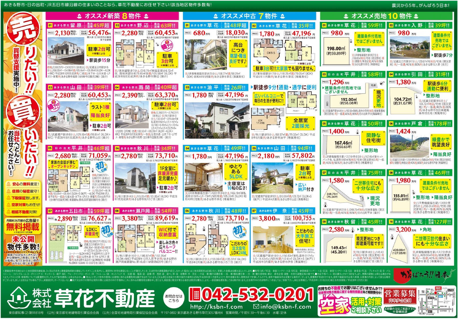あきる野市草花の草花不動産。 地元密着、JR五日市線沿線を中心にあきる野市~日の出町近郊の新築・中古・土地など不動産のことなら何でもご相談ください。
