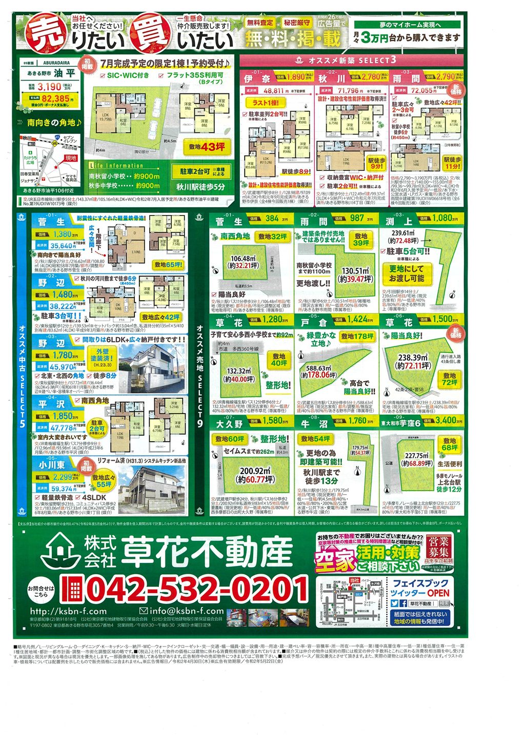 あきる野市草花の草花不動産。 地元密着、JR五日市線沿線を中心にあきる野市~日の出町近郊の新築・中古・土地など不動産のことなら何でもご相談ください。