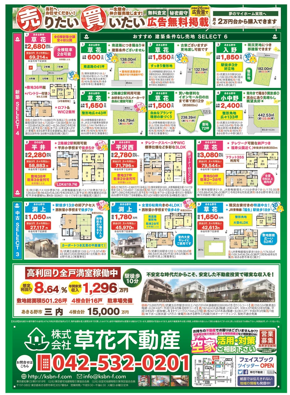 あきる野市草花の草花不動産。 地元密着、JR五日市線沿線を中心にあきる野市~日の出町近郊の新築・中古・土地など不動産のことなら何でもご相談ください。