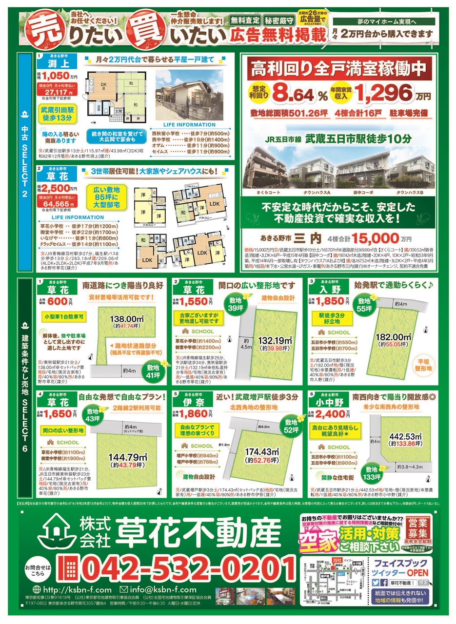 あきる野市草花の草花不動産。 地元密着、JR五日市線沿線を中心にあきる野市~日の出町近郊の新築・中古・土地など不動産のことなら何でもご相談ください。