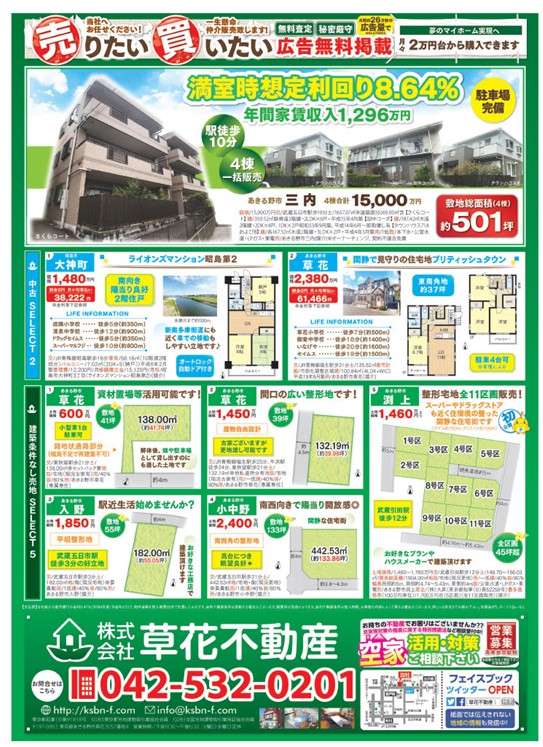 あきる野市草花の草花不動産。 地元密着、JR五日市線沿線を中心にあきる野市~日の出町近郊の新築・中古・土地など不動産のことなら何でもご相談ください。