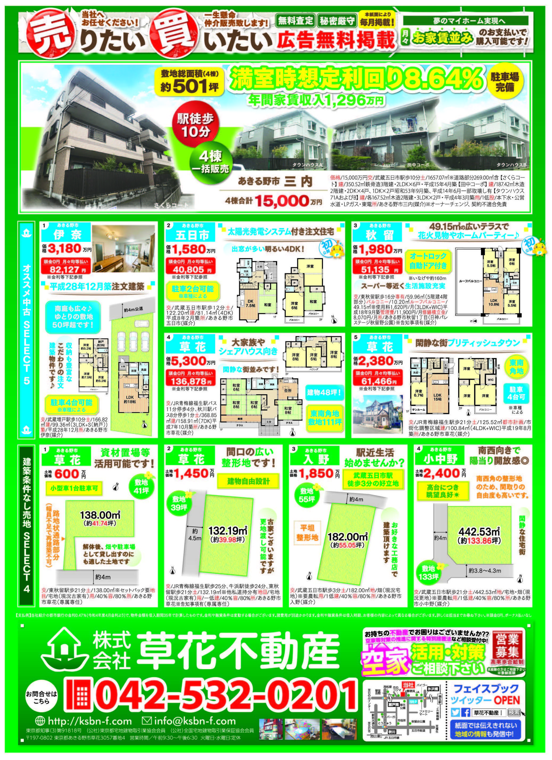 あきる野市草花の草花不動産。 地元密着、JR五日市線沿線を中心にあきる野市~日の出町近郊の新築・中古・土地など不動産のことなら何でもご相談ください。