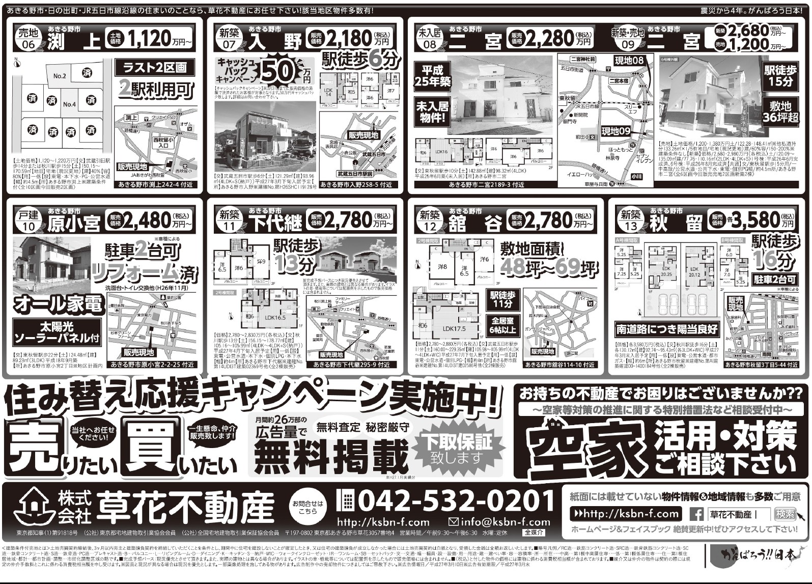 あきる野市草花の草花不動産。 地元密着、JR五日市線沿線を中心にあきる野市~日の出町近郊の新築・中古・土地など不動産のことなら何でもご相談ください。