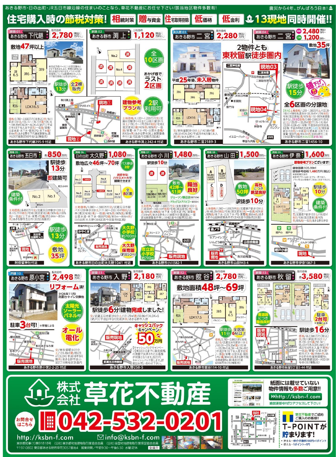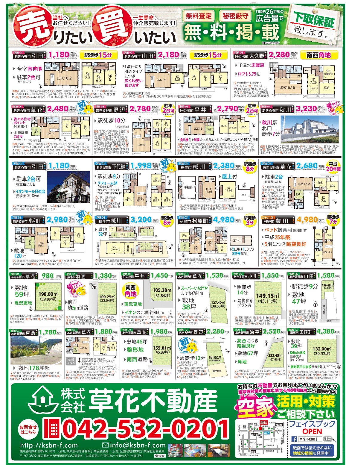 あきる野市草花の草花不動産。 地元密着、JR五日市線沿線を中心にあきる野市~日の出町近郊の新築・中古・土地など不動産のことなら何でもご相談ください。
