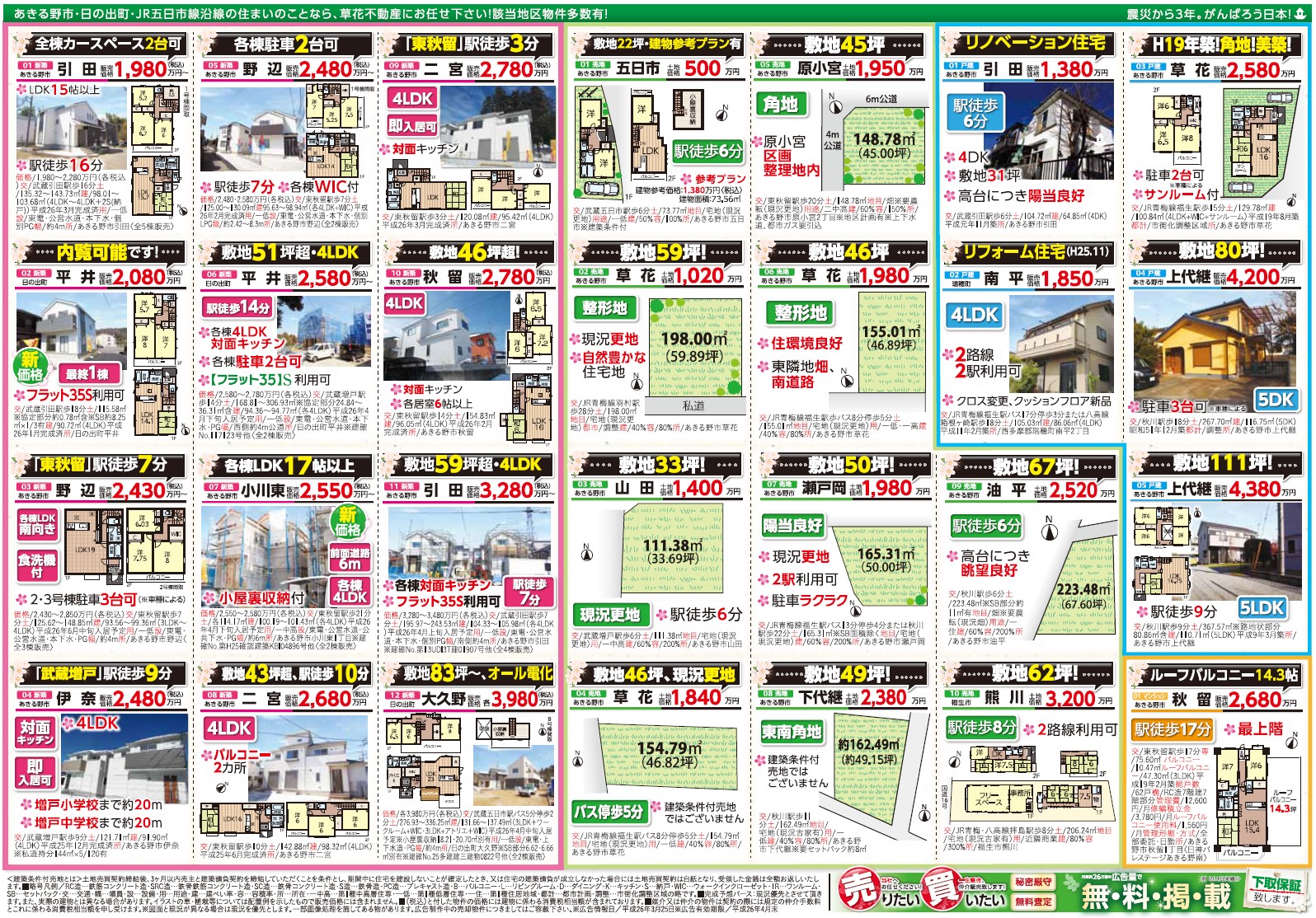 あきる野市草花の草花不動産。 地元密着、JR五日市線沿線を中心にあきる野市~日の出町近郊の新築・中古・土地など不動産のことなら何でもご相談ください。