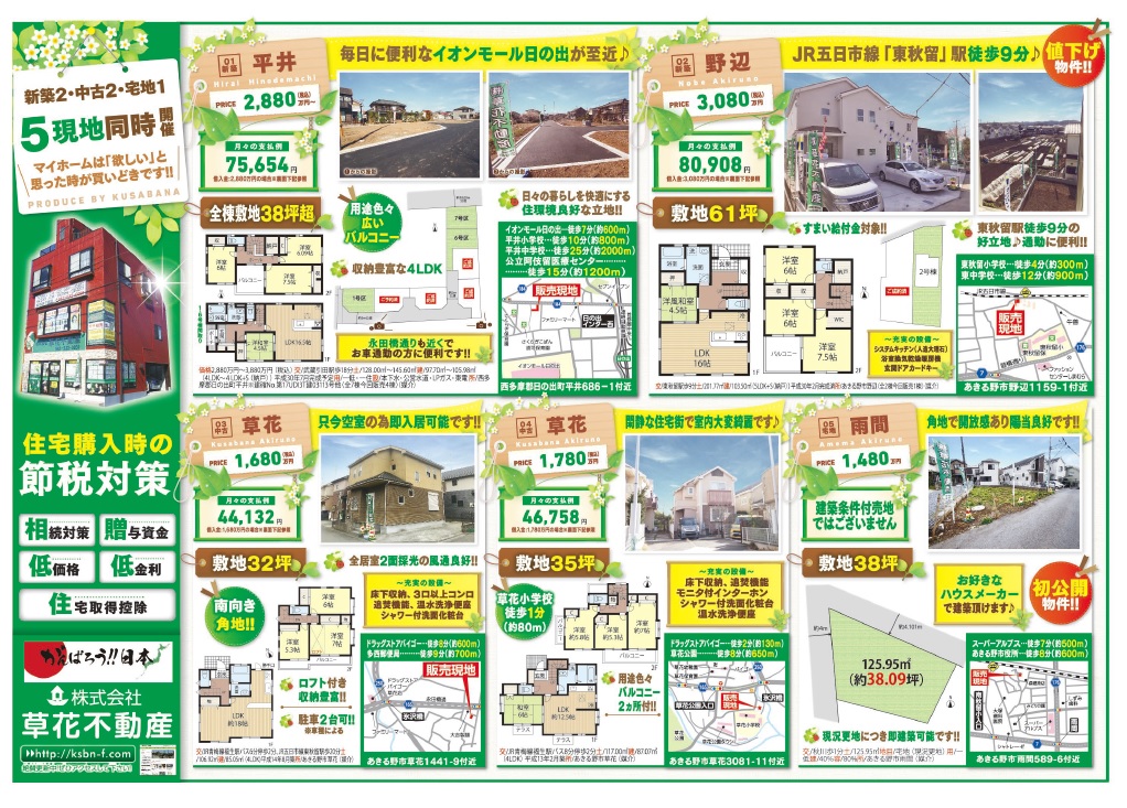 あきる野市草花の草花不動産。 地元密着、JR五日市線沿線を中心にあきる野市~日の出町近郊の新築・中古・土地など不動産のことなら何でもご相談ください。
