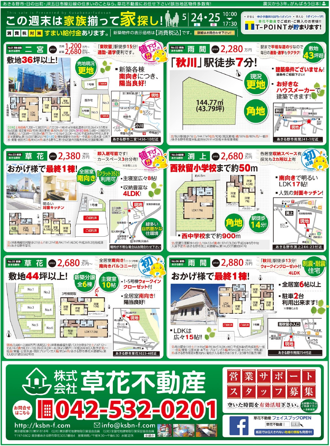 あきる野市草花の草花不動産。 地元密着、JR五日市線沿線を中心にあきる野市~日の出町近郊の新築・中古・土地など不動産のことなら何でもご相談ください。