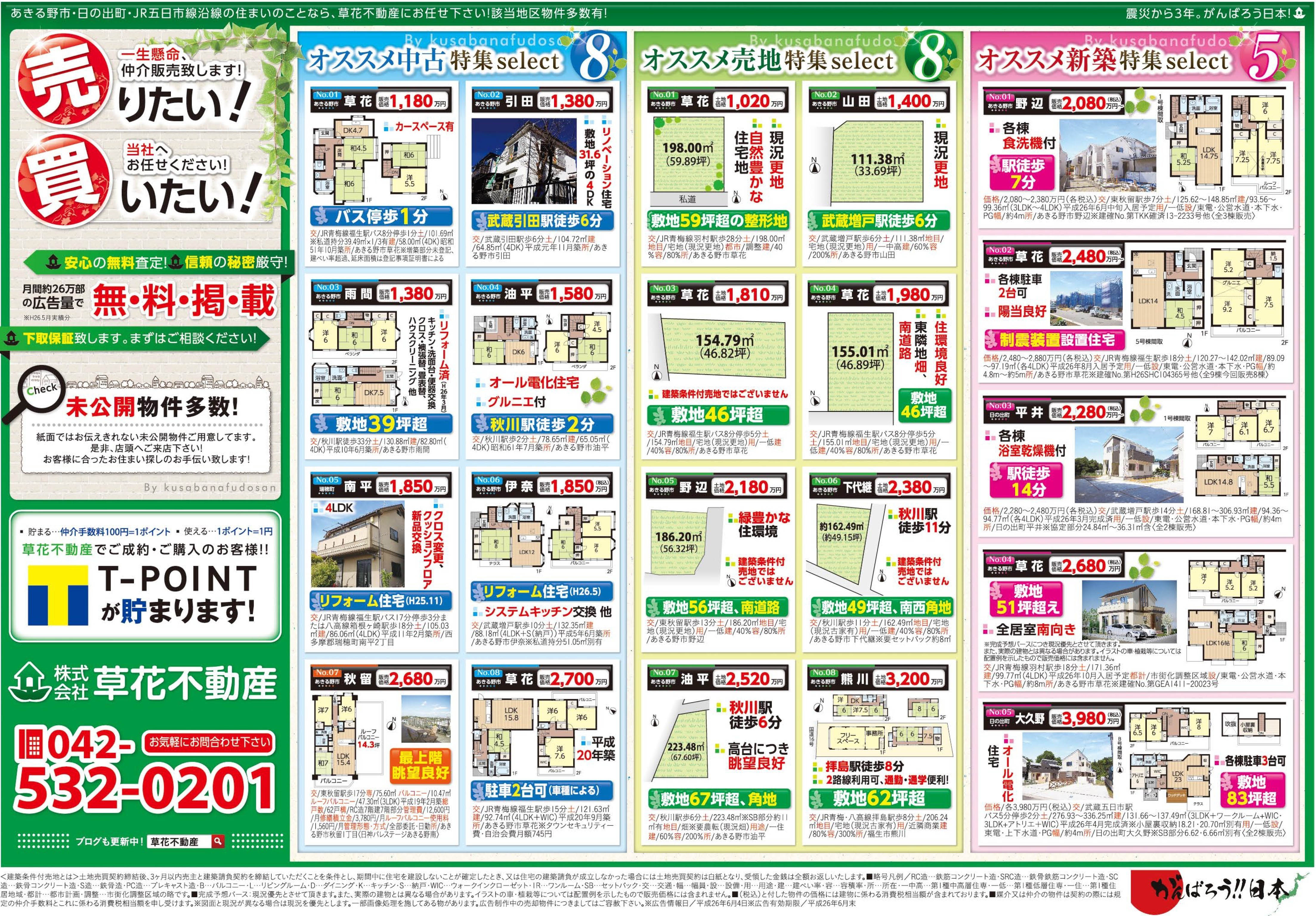 あきる野市草花の草花不動産。 地元密着、JR五日市線沿線を中心にあきる野市~日の出町近郊の新築・中古・土地など不動産のことなら何でもご相談ください。