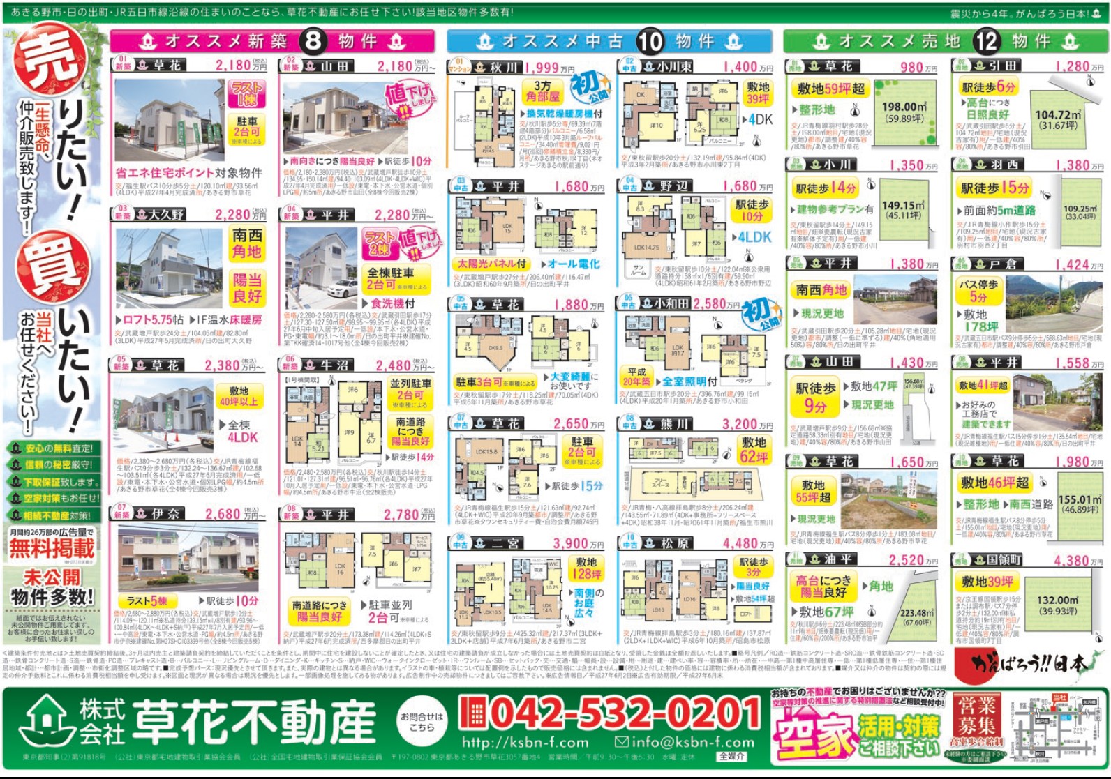 あきる野市草花の草花不動産。 地元密着、JR五日市線沿線を中心にあきる野市~日の出町近郊の新築・中古・土地など不動産のことなら何でもご相談ください。