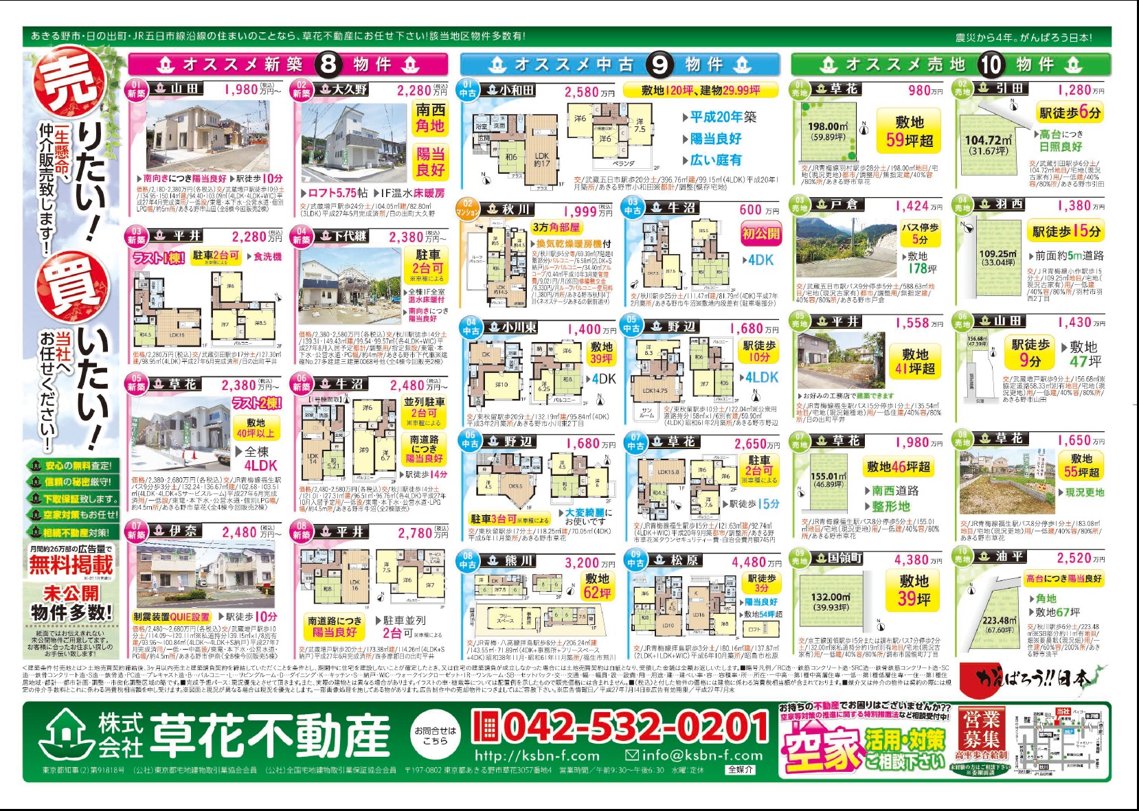 あきる野市草花の草花不動産。 地元密着、JR五日市線沿線を中心にあきる野市~日の出町近郊の新築・中古・土地など不動産のことなら何でもご相談ください。