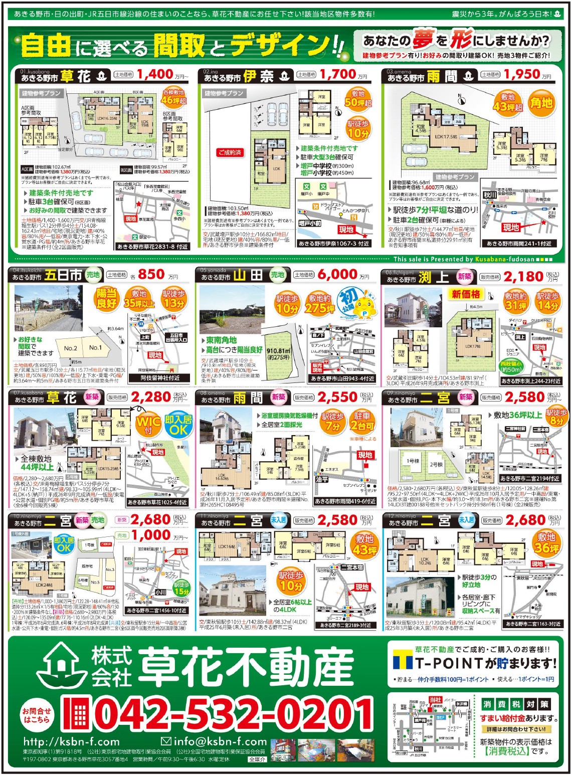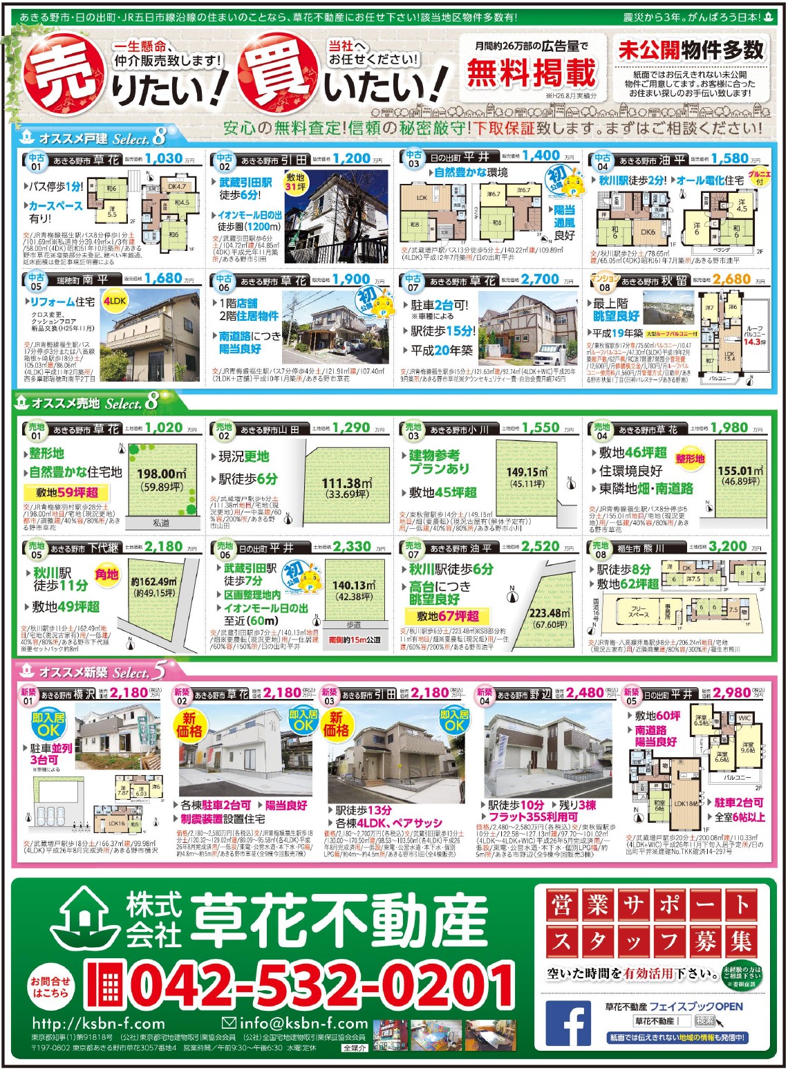 あきる野市草花の草花不動産。 地元密着、JR五日市線沿線を中心にあきる野市~日の出町近郊の新築・中古・土地など不動産のことなら何でもご相談ください。