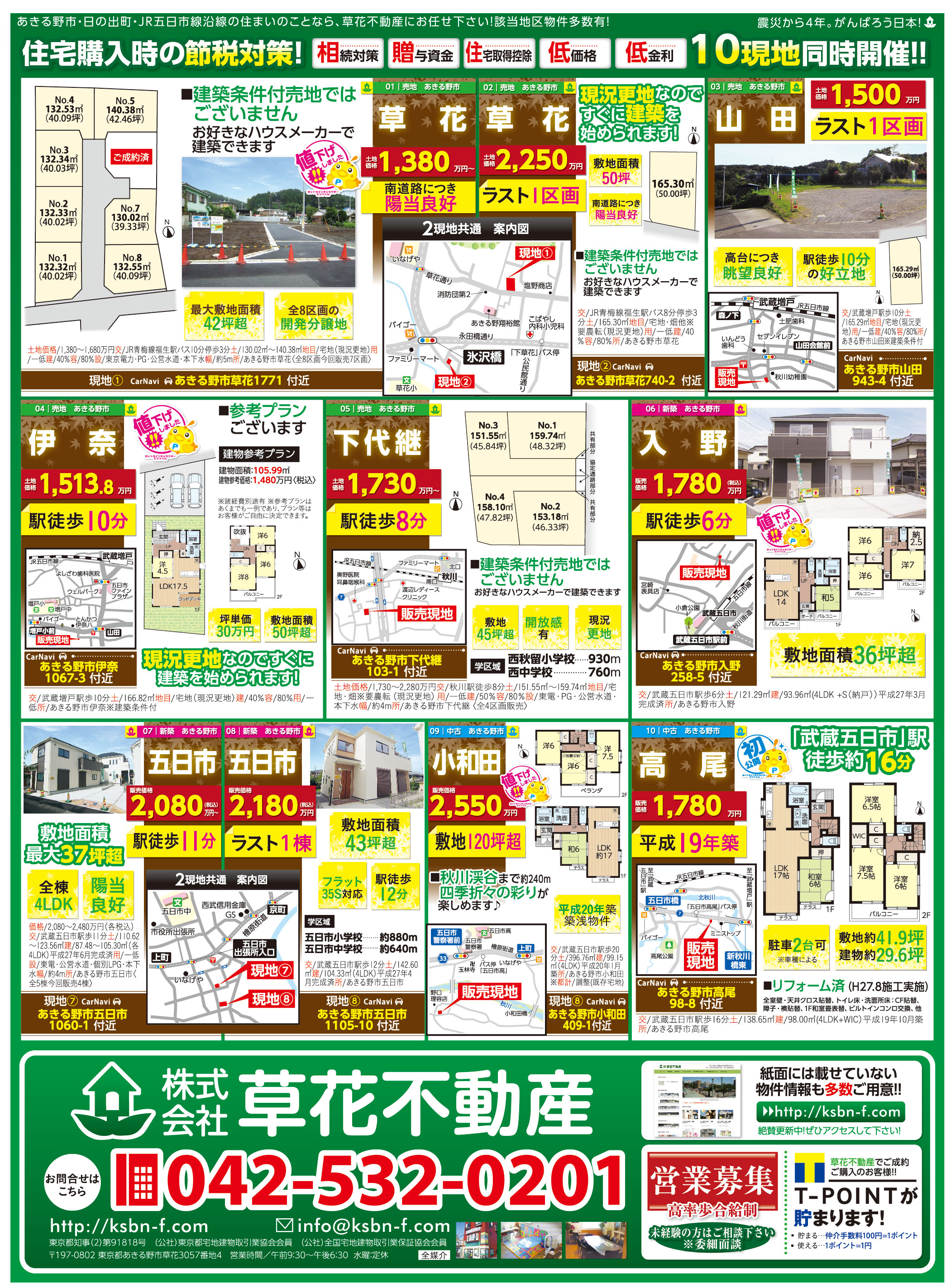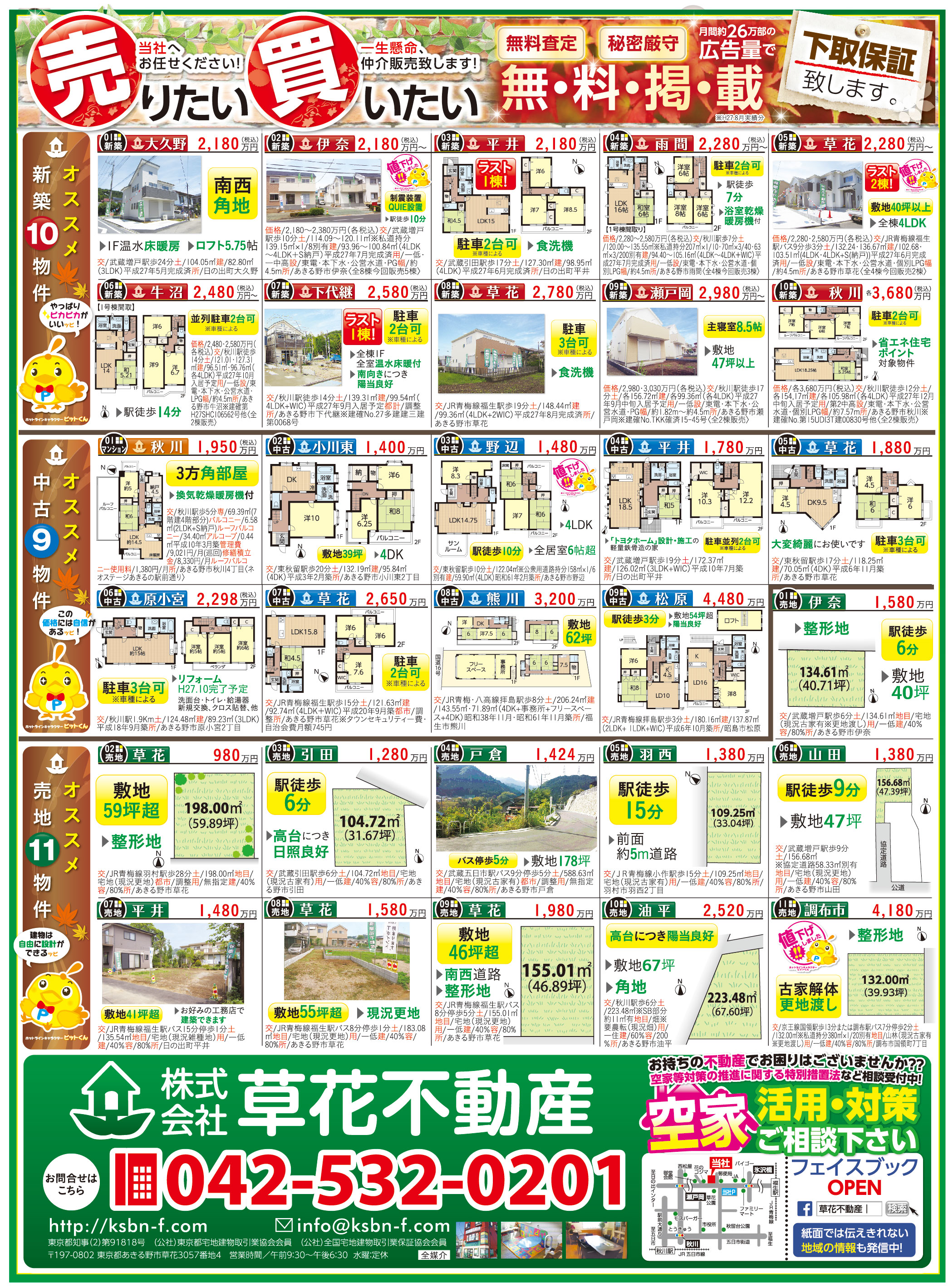 あきる野市草花の草花不動産。 地元密着、JR五日市線沿線を中心にあきる野市~日の出町近郊の新築・中古・土地など不動産のことなら何でもご相談ください。